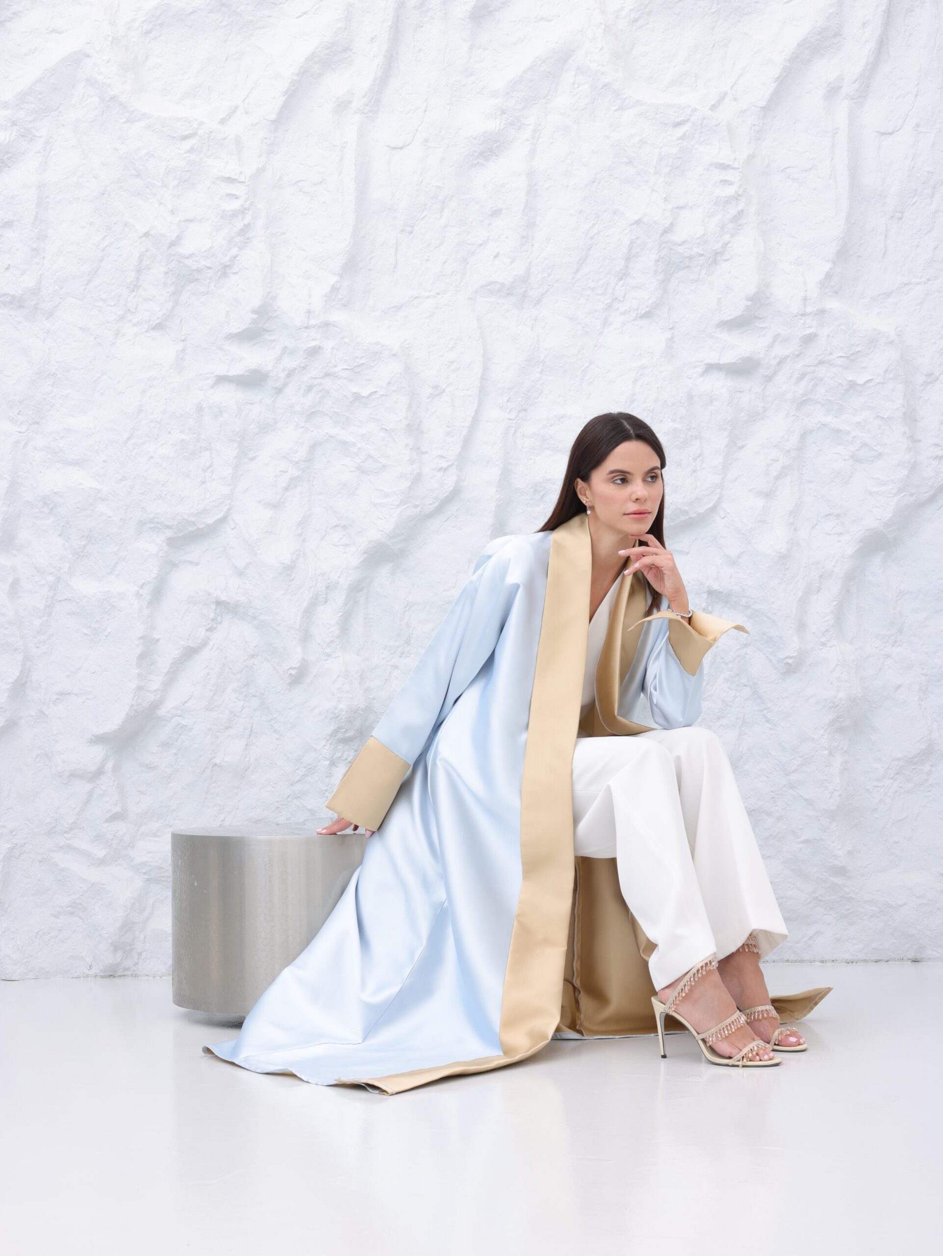 A whisper of elevated calm. Azure Dune moves with a serene confidence, wrapping the body in a cool, airy blue that feels both ethereal and intentionally powerful. Finished with warm sand-toned accents, this silhouette balances softness with quiet authority — a harmony of sky and earth.