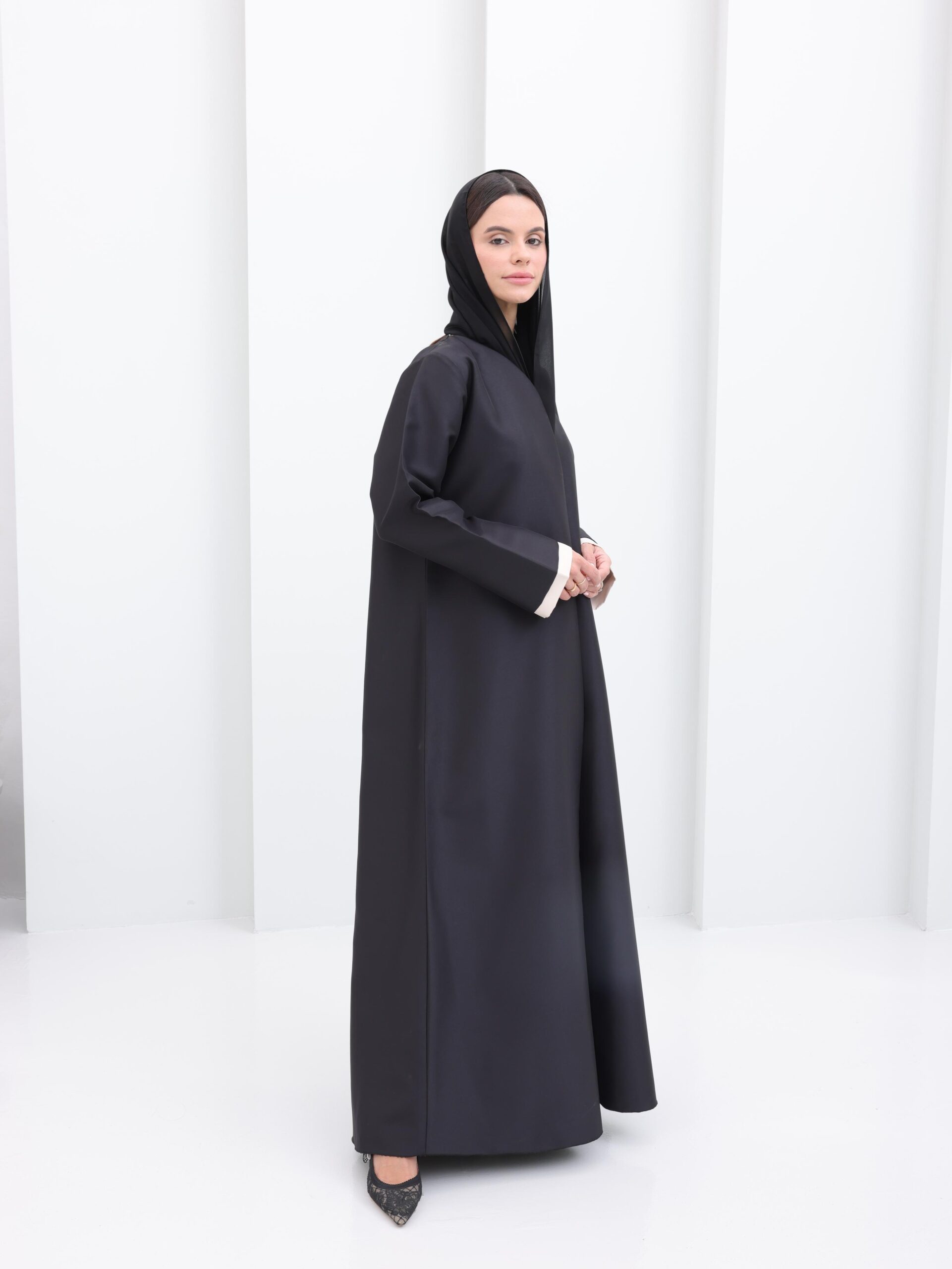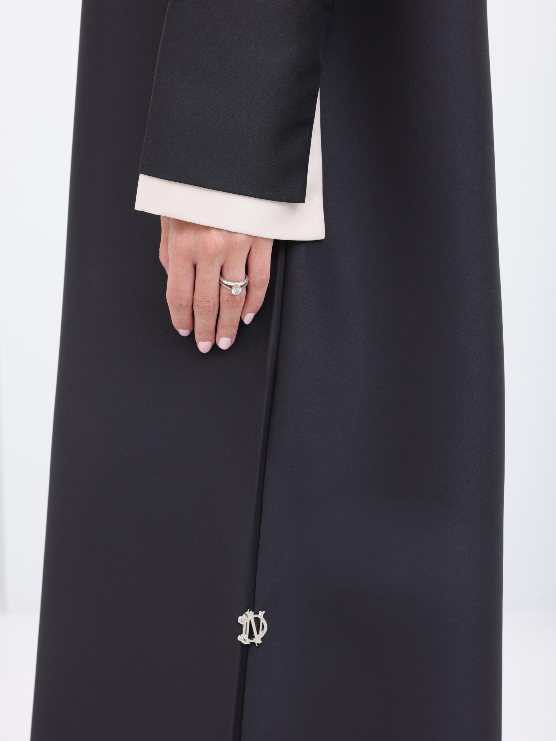 A masterpiece of subtle grandeur. Lattice Royale drapes the figure in a smooth, midnight-black silhouette, tailored with clean lines that speak to effortless sophistication. The design remains pristine and composed from the front, allowing its defining element to reveal itself with quiet impact from behind.